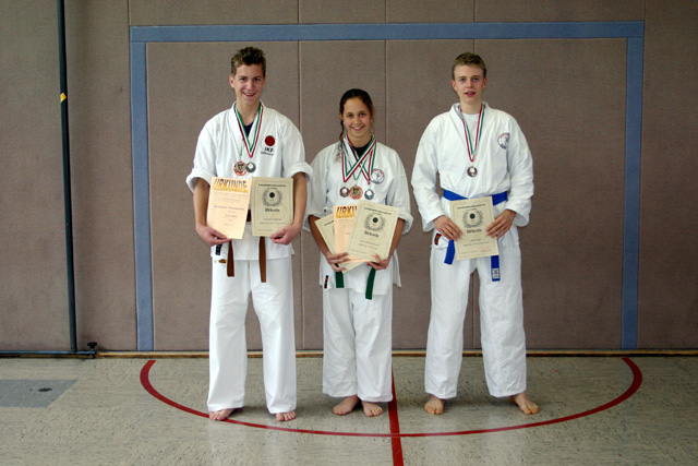 Die erfolgreichen Teilnehmer am Goitzsche Cup in Sandersdorf/Sachsen-Anhalt und an den Landesmeisterschaften in Remscheid/NRW. Von links: Christian Pfannkuchen, Leticia M. W. und Lukas Lebisch.