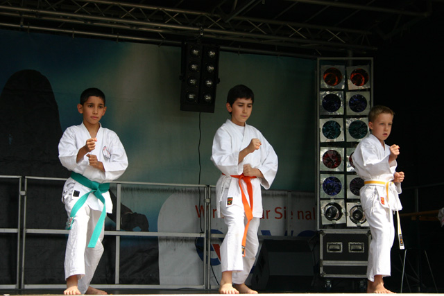 Die Kinder zeigen einfache Kihon-Techniken (=Grundtechniken).