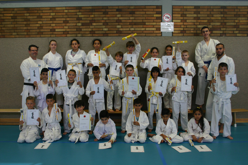 28.06.2017: 1. Gruppe Sommerprüflinge mit Prüfer Peter Sauer und den