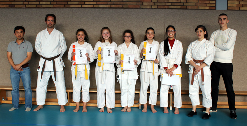 13.06.2018: (von links) Die Trainer Hai Doan und Matthias Roj, Chiara Reyes Nunez, Vanesa Bektas, Isabel Benali, Devrim Cuhadar, Melissa Quang, Prüferin Büsra Karasungur und Trainer Nassim Hamdaoui. |