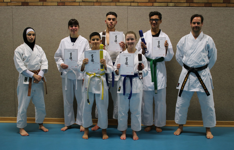 19.12.2018: Zweite Gruppe der Prüflinge (von links) Prüferin Büsra Karasungur, Franziska Roth, Mohamed Daine,