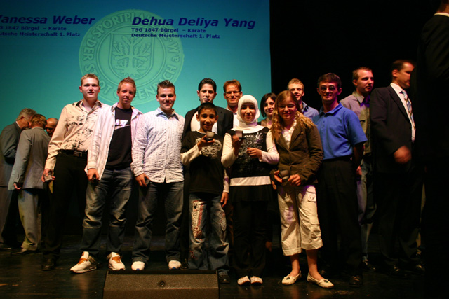 Die TSG-Karatesportler, die mit einer silbernen Sportplakette für ihre Leistungen bei der Deutschen Karatemeisterschaft ausgezeichnet wurden.