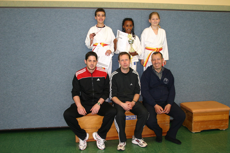 06.06.09: Reda El Alami, Bilcha Takele und Teresa Terpitz mit ihren Betreuern bzw. Trainern Fotios Filis, Bert Gardon und Mohamed El Yazidi.