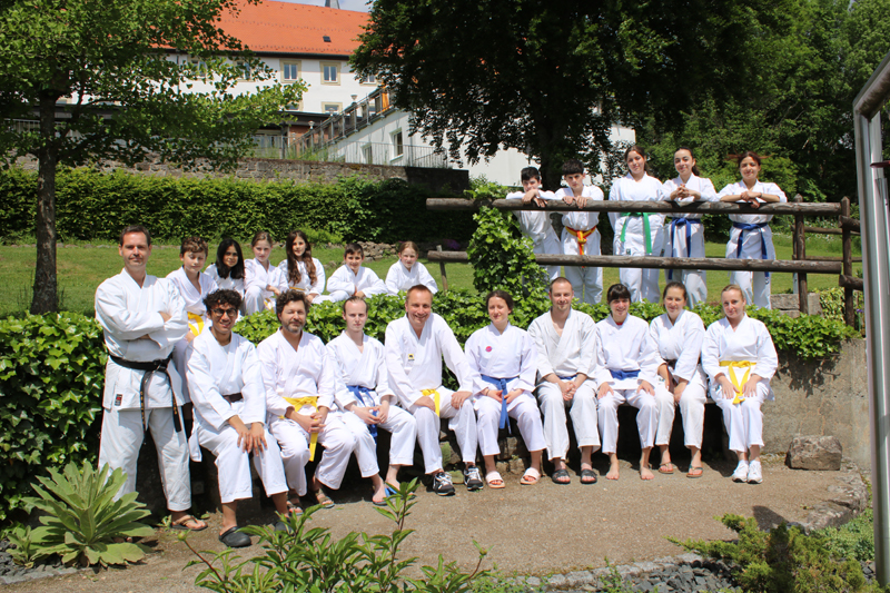 Die Teilnehmer an der Karatefreizeit in der Jugendbildungsstätte Volkersberg: (vorne v. l.) Matthias Roj, Miguel Reyes Nunez, Nils Scheffer, Pavel Machulskiy, Volkhard Vogeler, Mihaela Zugel, Christoph Linn, Franziska Roth, Chantal Sanna und Sabrina Krauss (hinten v. l.) Jakob Scheffer, Ece Cuhadar, Charlotte Klauke, Shila Zimmermann, Elias Noori, Fenja Sommer, Luca de Azevedo, Marc Kazharsky, Ouissal Kasmi, Devrim Cuhadar und Chiara Reyes Nunez |